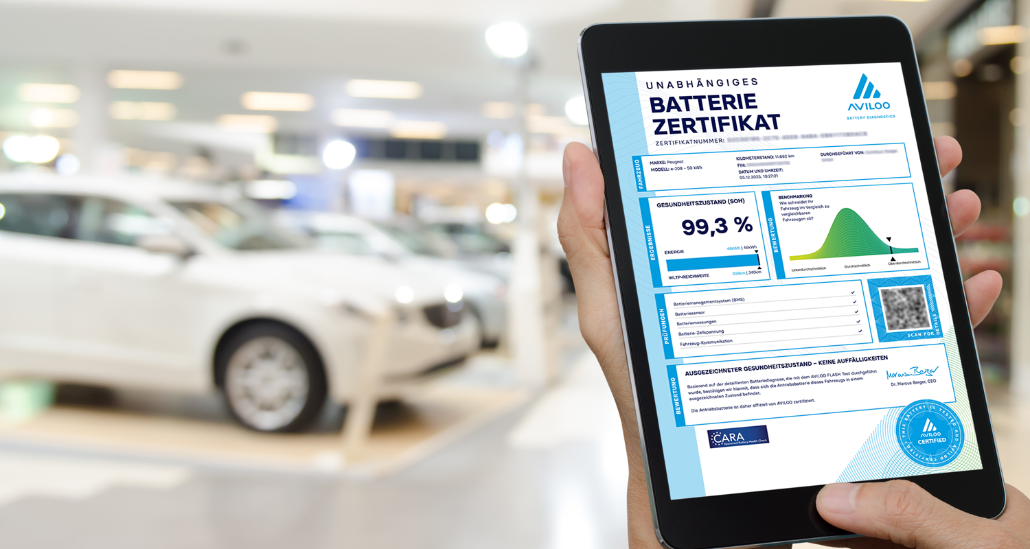 Firma Cotxe Polska Sp. zo.o. jest przedstawicielem austriackiej firmy AvilooGmbh europejskiego lidera diagnostyki stanu baterii (SoH). Posiadamy profesjonalne urządzenie diagnostyczne rekomendowane przez europejskie stowarzyszenie remarketingu pojazdów CARA. Firma Aviloo otrzymała także liczne nagrody za jakość urządzeń diagnostycznych.